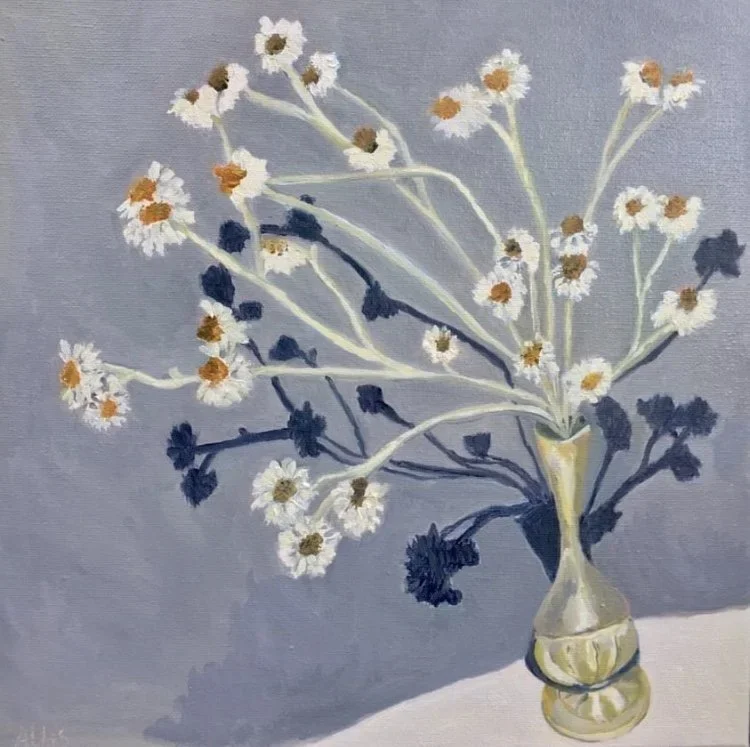 White Paper Daisies, 31cm x 31cm, Oil on Canvas, 2020